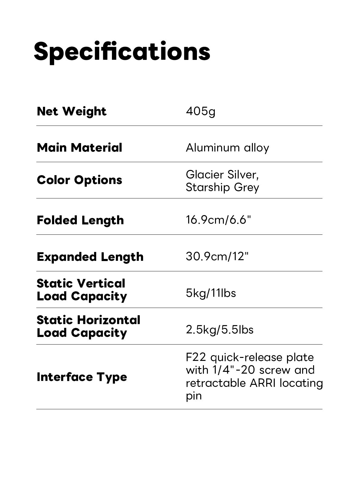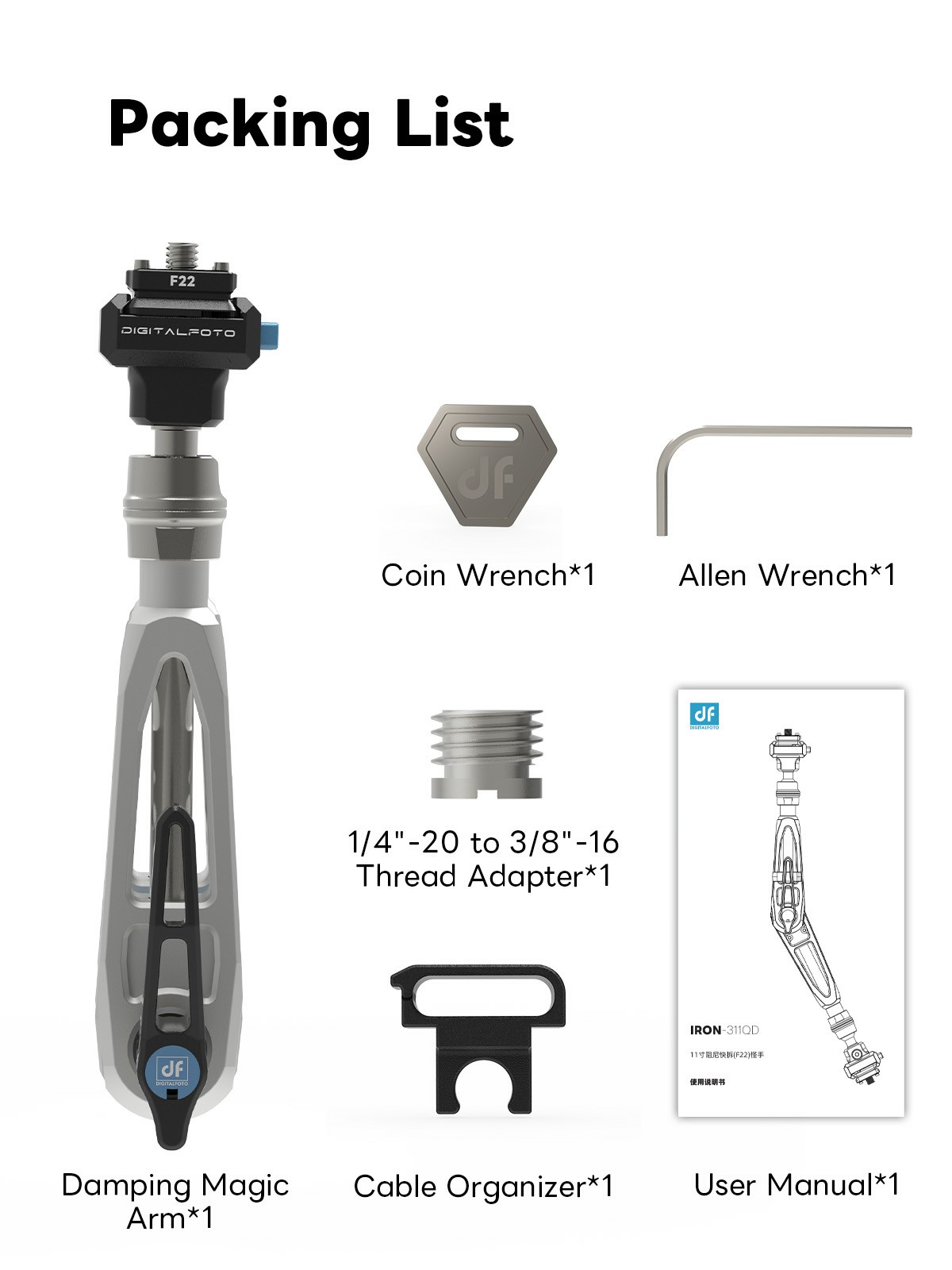IRON-311QD 11" Damping hover & F22 Quick Release Magic Arm-Glacier Silver/Starship Gray